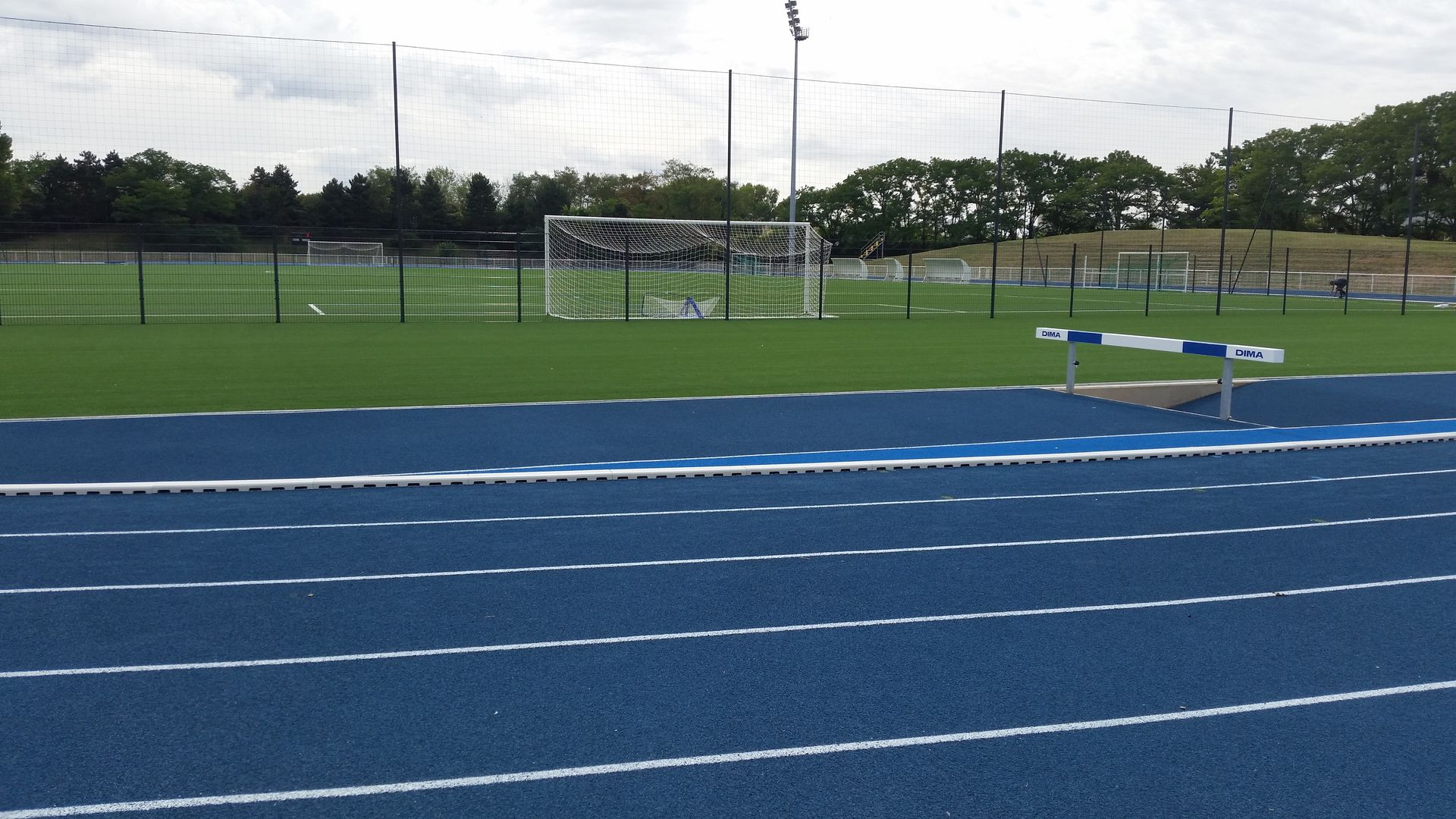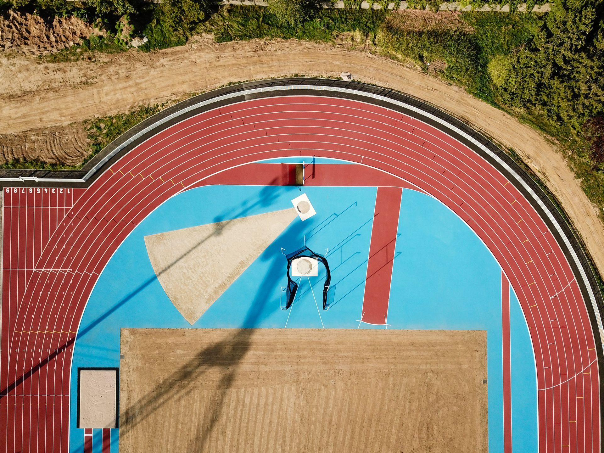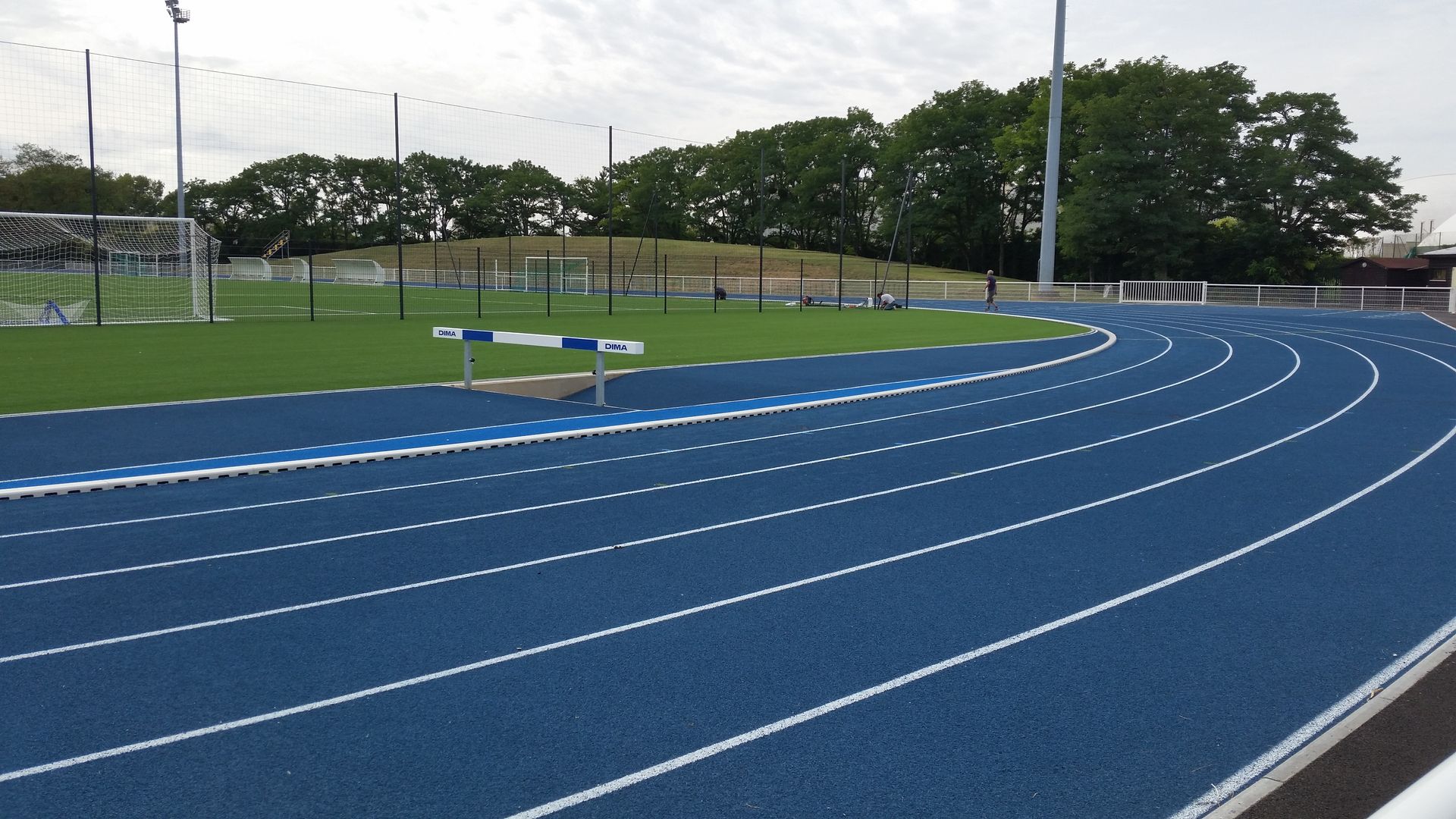 Construction d'une piste 8/9 couloirs 400 m, niveau NATIONAL avec ateliers de concours (sauts en longueur, hauteur, triple, perche, lancers de poids, disque, marteau et javelot) et éclairage, zone d'échauffement 6 lignes droites et construction de vestiaires / tribunes